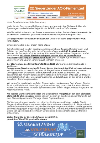 Wir haben die Strecke komplett für den Verkehr gesperrt. Trotzdem können wir nicht komplett gewährleisten, dass.auf den Parkplatz neben dem Stadion Autos fahren. Wir haben zur Sicherheit Ordner vor Ort.